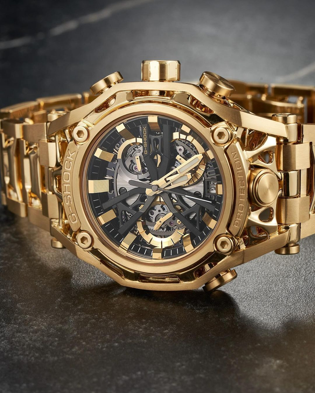 Первые Dream Project появились пять лет назад и тоже были приурочены к дню рождения бренда: тогда марка отмечала 35-летие. Тогда корпус и чистого золота «обнимал» электронные часы на циферблате. Ограниченный тираж насчитывал 35 наручных часов, которые стоили 70 тысяч долларов. Высокая цена не испугала тех, кто был в восторге от золотых G-Shock, и их раскупили очень быстро.