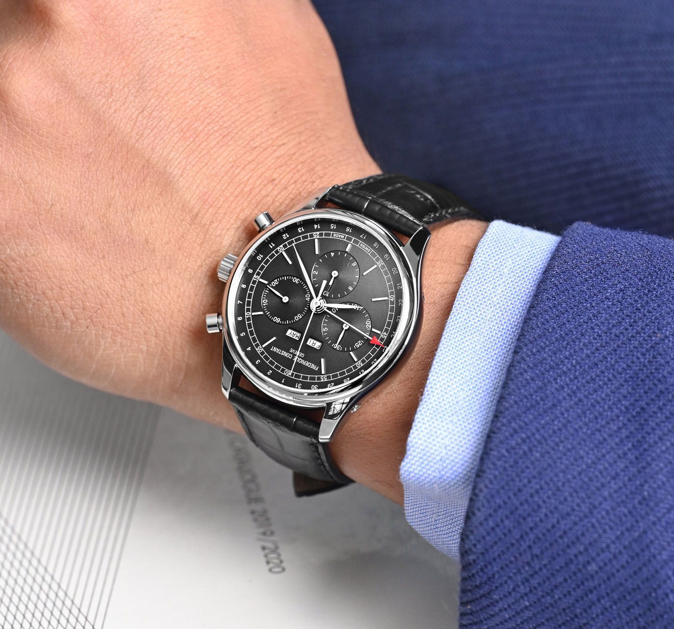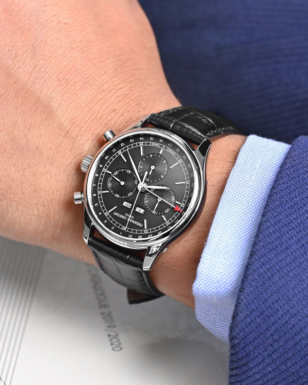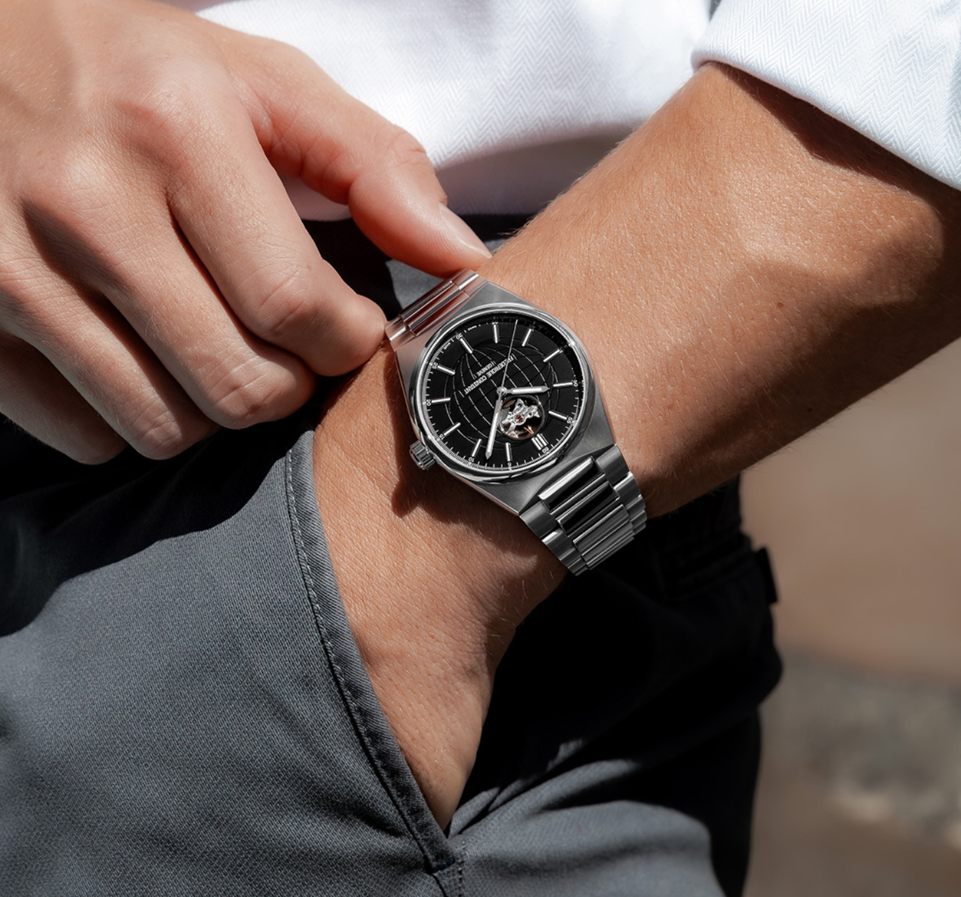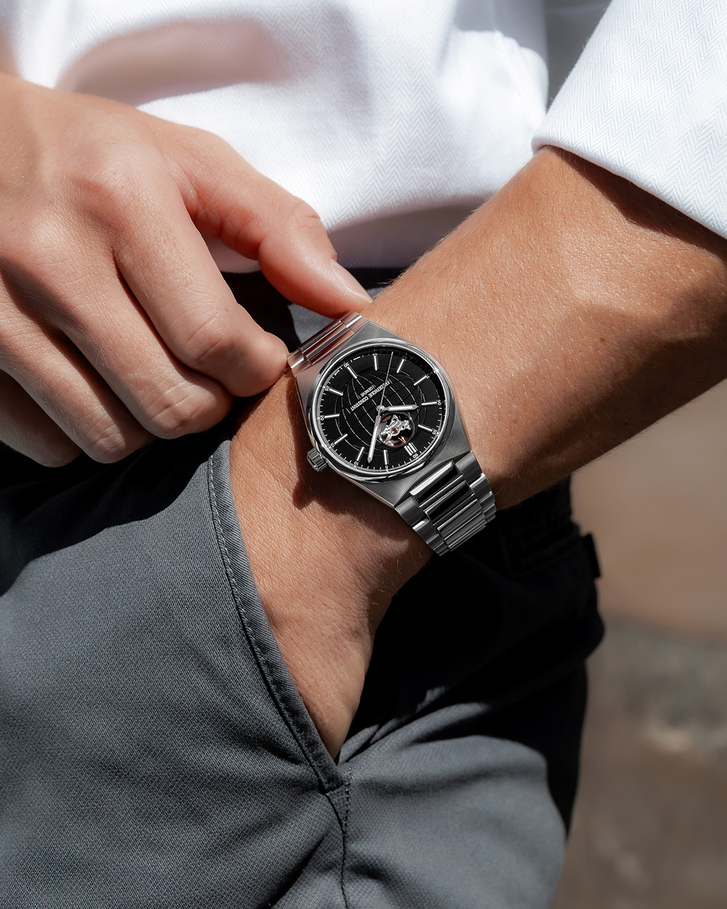 В положении «12 часов» изображено окно на механическом сердце, прославленное Фредериком Константом. Известное как «Биение сердца», оно позволяет вам увидеть бьющееся сердце часов.