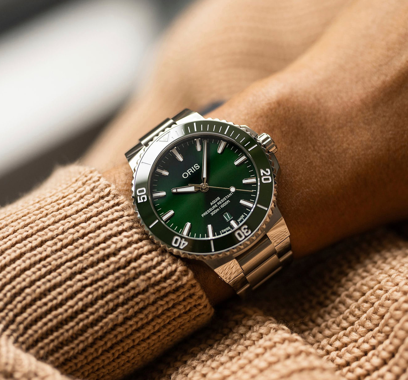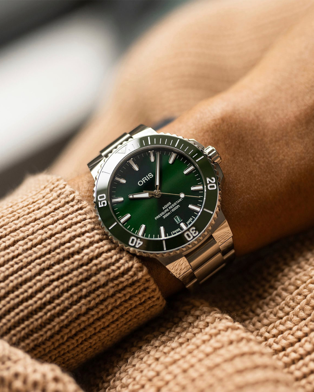 Контрастный циферблат цвета зеленого Эгейского моря с использованием перламутра, они игриво переливаются на свету, как поверхность воды, добавляя элегантный, утонченный оттенок