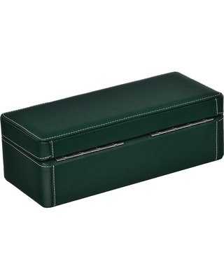 Новая оригинальная шкатулка в дизайнерском исполнении выполнена в чёрной коже с красной прострочкой в цвет внутренней прошитой красной микрофиброй с 4 отделениями для часов, съемные подушечки рассчитанные на разные размеры часов . Шкатулка в приятном исполнении.