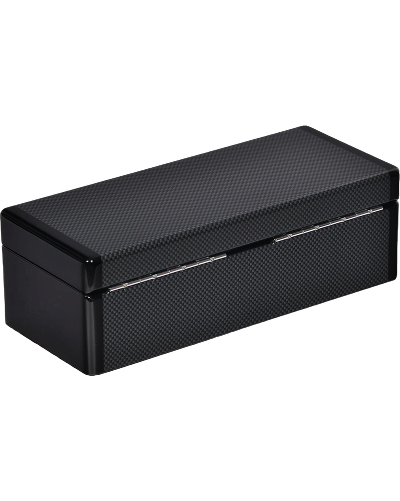 Новая оригинальная шкатулка в дизайнерском исполнении выполнена в современном карбоне с серой микрофиброй внутри с 4 отделениями для часов, съемные подушечки рассчитанные на разные размеры часов. Шкатулка в приятном исполнении.