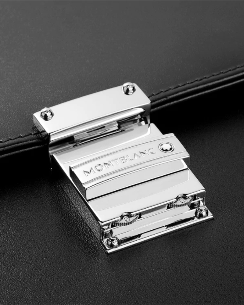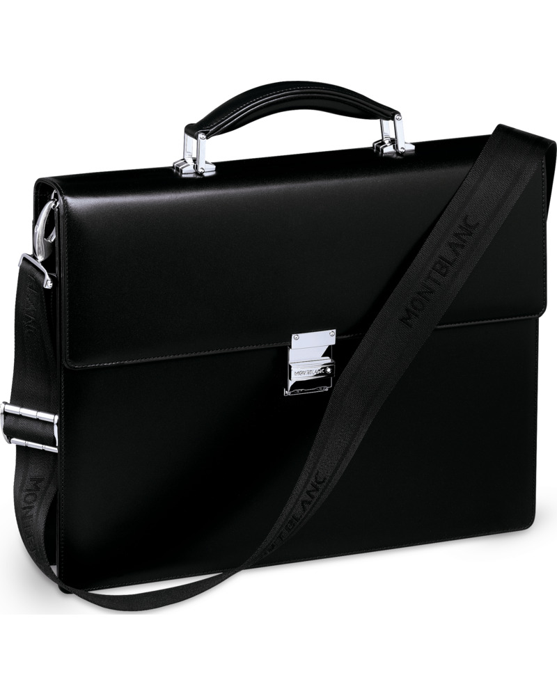 Портфель с одним отделением и съемным плечевым ремнем, изготовленный из зернистой яловичной кожи, подкладка из жаккарда с надписью Montblanc, фурнитура из нержавеющей стали, кодовый замок, эмблема Montblanc.Одно основное отделение, большое внутреннее отделение на молнии, большое заднее отделение. Отделение для 2 пишущих инструментов, 1 документа среднего размера и 6 документов небольшого размера, кольцо для ключей.