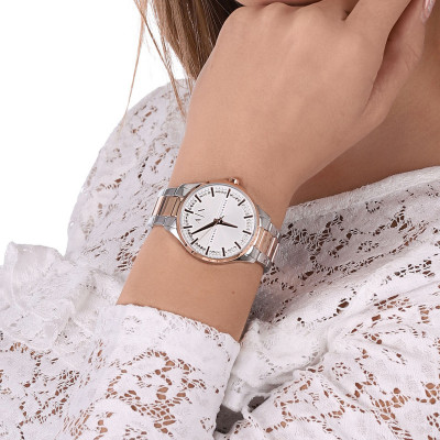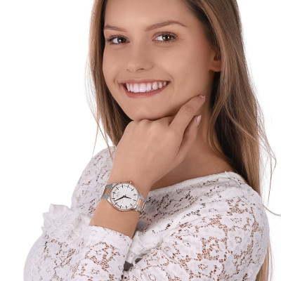 Предлагаем купить наручные часы Armani Exchange AX5258 в г. Москва. Это классические женские часы. Водозащита до 50 метров позволит принимать душ или умываться, не снимая часов. Надежное минеральное стекло защищает часы от царапин и долго сохраняет первоначальный внешний вид. Минеральное стекло более устойчиво к появлению небольших царапин и потертостей, хорошо может выдержать небольшие удары и падения. Даже если поцарапаете стекло, его легко можно отполировать в часовой мастерской и вернуть им прежний вид. Корпус часов изготовлен из стали, механизм — кварц. Кварцевые часы всегда точнее механических. В среднем, погрешность хода составляет 20 секунд в месяц. Кварцевые часы не нужно заводить, только менять батарейку раз в несколько лет.