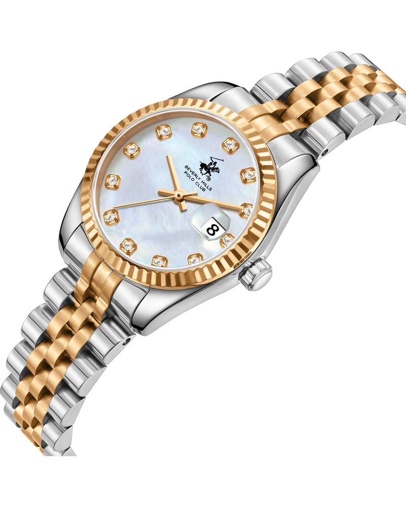 Предлагаем купить наручные часы Beverly Hills Polo Club BP3707X.520 в г. Москва. Это женские часы. Водозащита до 50 метров позволит принимать душ или умываться, не снимая часов. Надежное минеральное стекло защищает часы от царапин и долго сохраняет первоначальный внешний вид. Минеральное стекло более устойчиво к появлению небольших царапин и потертостей, хорошо может выдержать небольшие удары и падения. Даже если поцарапаете стекло, его легко можно отполировать в часовой мастерской и вернуть им прежний вид. Корпус часов изготовлен из стали, механизм — кварц. Кварцевые часы всегда точнее механических. В среднем, погрешность хода составляет 20 секунд в месяц. Кварцевые часы не нужно заводить, только менять батарейку раз в несколько лет.