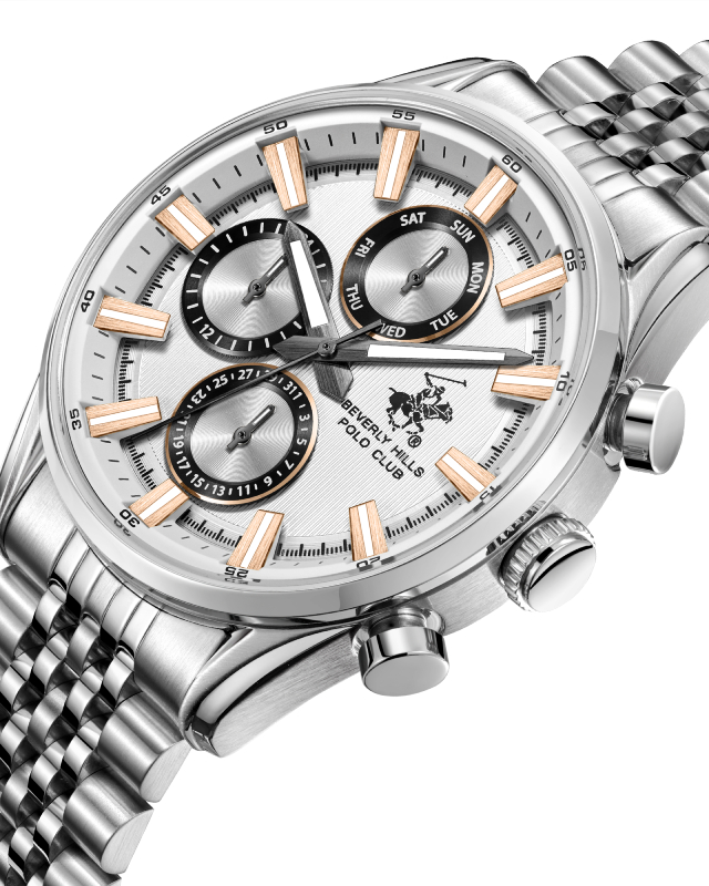 Предлагаем купить наручные часы Beverly Hills Polo Club BP3823X.330 в г. Москва. Это классические мужские часы. Водозащита до 50 метров позволит принимать душ или умываться, не снимая часов. Надежное минеральное стекло защищает часы от царапин и долго сохраняет первоначальный внешний вид. Минеральное стекло более устойчиво к появлению небольших царапин и потертостей, хорошо может выдержать небольшие удары и падения. Даже если поцарапаете стекло, его легко можно отполировать в часовой мастерской и вернуть им прежний вид. Корпус часов изготовлен из стали, механизм — кварц. Кварцевые часы всегда точнее механических. В среднем, погрешность хода составляет 20 секунд в месяц. Кварцевые часы не нужно заводить, только менять батарейку раз в несколько лет.