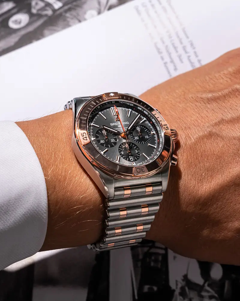 Предлагаем купить наручные часы Breitling UB0134101B1U1 в г. Москва. Это мужские часы из коллекции Chronomat. Водозащита до 200 метров позволит плавать, нырять и погружаться под воду с аквалангом. Надежное сапфировое стекло противостоит появлению царапин. Сапфировое стекло используется в дорогостоящих изделиях, это лучшее стекло для наручных часов, которое не царапается при механическом воздействии, его можно повредить только алмазом. Корпус часов изготовлен из стали, механизм — автоподзавод. В часах с автоподзаводом заводная головка практически не используется, что исключает истирание ее материала и материала корпуса (зазор между ними остается постоянным – это препятствует попаданию внутрь влаги, пыли, грязи).