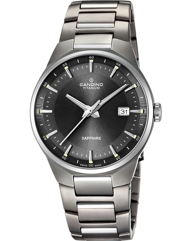 Предлагаем купить наручные часы Candino C4605/5 в г. Москва. Это мужские часы из коллекции Titanium. Водозащита до 50 метров позволит принимать душ или умываться, не снимая часов. Надежное сапфировое стекло противостоит появлению царапин. Сапфировое стекло используется в дорогостоящих изделиях, это лучшее стекло для наручных часов, которое не царапается при механическом воздействии, его можно повредить только алмазом. Корпус часов изготовлен из титана, механизм — кварц. Кварцевые часы всегда точнее механических. В среднем, погрешность хода составляет 20 секунд в месяц. Кварцевые часы не нужно заводить, только менять батарейку раз в несколько лет.