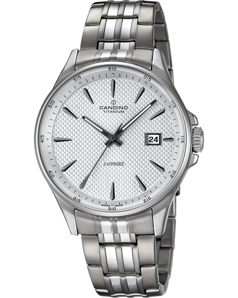 Предлагаем купить наручные часы Candino C4606/A в г. Москва. Это классические мужские часы из коллекции Titanium. Водозащита до 50 метров позволит принимать душ или умываться, не снимая часов. Надежное сапфировое стекло противостоит появлению царапин. Сапфировое стекло используется в дорогостоящих изделиях, это лучшее стекло для наручных часов, которое не царапается при механическом воздействии, его можно повредить только алмазом. Корпус часов изготовлен из титана, механизм — кварц. Кварцевые часы всегда точнее механических. В среднем, погрешность хода составляет 20 секунд в месяц. Кварцевые часы не нужно заводить, только менять батарейку раз в несколько лет.