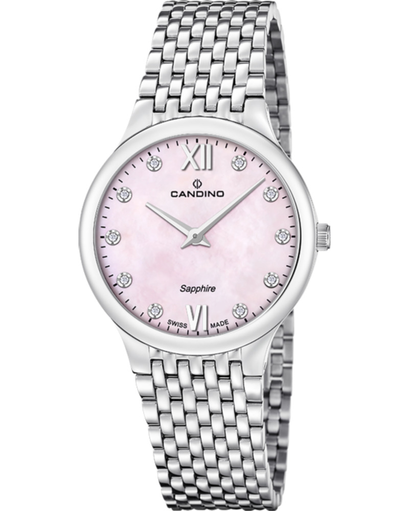 Предлагаем купить наручные часы Candino C4776/1 в г. Москва. Это классические женские часы из коллекции Lady Elegance. Водозащита до 50 метров позволит принимать душ или умываться, не снимая часов. Надежное сапфировое стекло противостоит появлению царапин. Сапфировое стекло используется в дорогостоящих изделиях, это лучшее стекло для наручных часов, которое не царапается при механическом воздействии, его можно повредить только алмазом. Корпус часов изготовлен из стали, механизм — кварц. Кварцевые часы всегда точнее механических. В среднем, погрешность хода составляет 20 секунд в месяц. Кварцевые часы не нужно заводить, только менять батарейку раз в несколько лет.