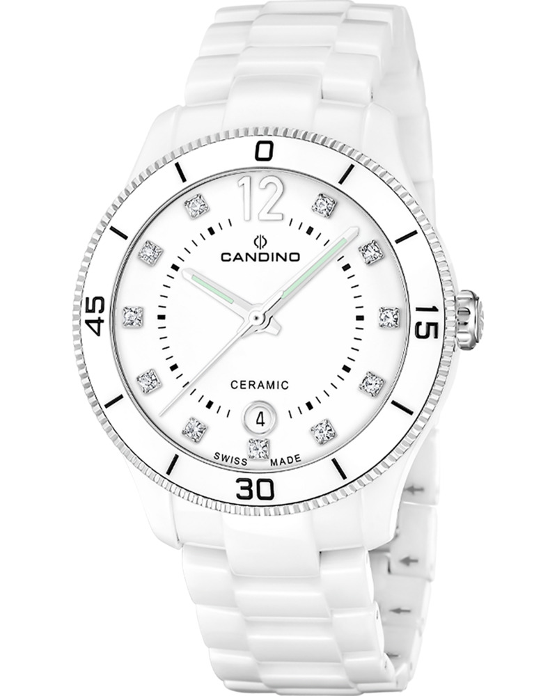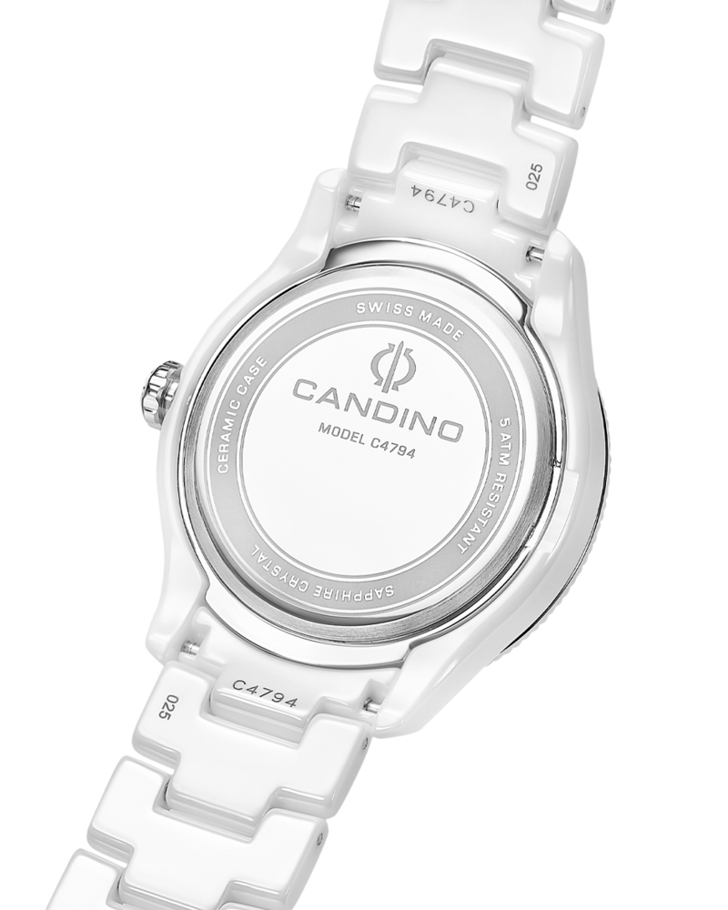 Предлагаем купить наручные часы Candino C4794/3 в г. Москва. Это классические мужские часы. Водозащита до 100 метров позволит плавать, нырять и заниматься другими водными видами спорта, не беспокоясь о сохранности механизма. Надежное сапфировое стекло противостоит появлению царапин. Сапфировое стекло используется в дорогостоящих изделиях, это лучшее стекло для наручных часов, которое не царапается при механическом воздействии, его можно повредить только алмазом. Корпус часов изготовлен из керамики, механизм — кварц. Кварцевые часы всегда точнее механических. В среднем, погрешность хода составляет 20 секунд в месяц. Кварцевые часы не нужно заводить, только менять батарейку раз в несколько лет.
