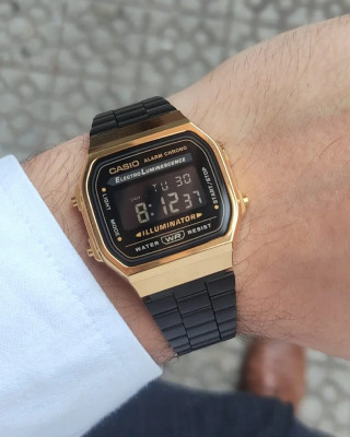 Предлагаем купить наручные часы Casio A168WEGB-1BDF в г. Москва. Это классические мужские часы из коллекции Collection Vintage. Водозащита до 30 метров позволит защитить корпус от случайных брызг или капель дождя. Надежное стеклопластиковое стекло очень трудно разбить. Корпус часов изготовлен из стали, механизм — электронные. Именно электронные часы считаются самыми точными в мире, обходя в это механические и кварцевые часы. Еще одним преимуществом электронных часов является, несомненно, их огромный функционал и возможность расширения.