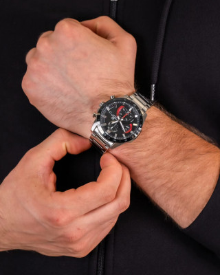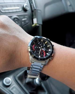Предлагаем купить наручные часы Casio EFR-571DB-1A1VUEF в г. Москва. Это мужские часы из коллекции EDIFICE. Водозащита до 100 метров позволит плавать, нырять и заниматься другими водными видами спорта, не беспокоясь о сохранности механизма. Надежное минеральное стекло защищает часы от царапин и долго сохраняет первоначальный внешний вид. Минеральное стекло более устойчиво к появлению небольших царапин и потертостей, хорошо может выдержать небольшие удары и падения. Даже если поцарапаете стекло, его легко можно отполировать в часовой мастерской и вернуть им прежний вид. Корпус часов изготовлен из стали, механизм — кварц. Кварцевые часы всегда точнее механических. В среднем, погрешность хода составляет 20 секунд в месяц. Кварцевые часы не нужно заводить, только менять батарейку раз в несколько лет.