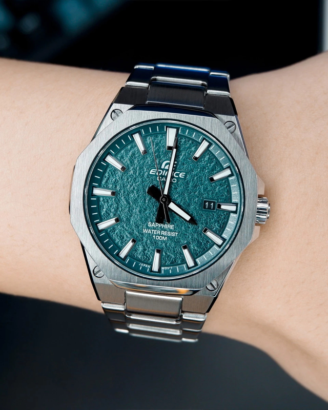 Предлагаем купить наручные часы Casio EFR-S108DE-3A в г. Москва. Это классические мужские часы из коллекции EDIFICE. Водозащита до 100 метров позволит плавать, нырять и заниматься другими водными видами спорта, не беспокоясь о сохранности механизма. Надежное сапфировое стекло противостоит появлению царапин. Сапфировое стекло используется в дорогостоящих изделиях, это лучшее стекло для наручных часов, которое не царапается при механическом воздействии, его можно повредить только алмазом. Корпус часов изготовлен из стали, механизм — кварц. Кварцевые часы всегда точнее механических. В среднем, погрешность хода составляет 20 секунд в месяц. Кварцевые часы не нужно заводить, только менять батарейку раз в несколько лет.
