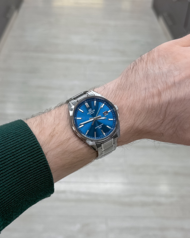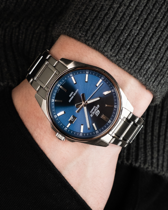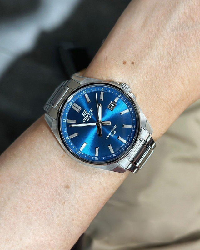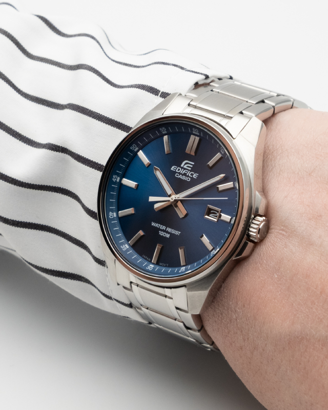 Предлагаем купить наручные часы Casio EFV-150D-2A в г. Москва. Это классические мужские часы из коллекции EDIFICE. Водозащита до 100 метров позволит плавать, нырять и заниматься другими водными видами спорта, не беспокоясь о сохранности механизма. Надежное сапфировое стекло противостоит появлению царапин. Сапфировое стекло используется в дорогостоящих изделиях, это лучшее стекло для наручных часов, которое не царапается при механическом воздействии, его можно повредить только алмазом. Корпус часов изготовлен из стали, механизм — кварц. Кварцевые часы всегда точнее механических. В среднем, погрешность хода составляет 20 секунд в месяц. Кварцевые часы не нужно заводить, только менять батарейку раз в несколько лет.