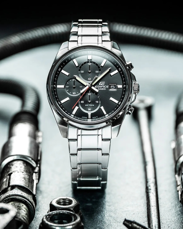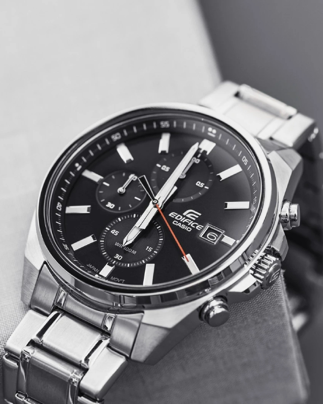 Предлагаем купить наручные часы Casio EFV-610D-1AVUEF в г. Москва. Это мужские часы из коллекции EDIFICE. Водозащита до 100 метров позволит плавать, нырять и заниматься другими водными видами спорта, не беспокоясь о сохранности механизма. Надежное минеральное стекло защищает часы от царапин и долго сохраняет первоначальный внешний вид. Минеральное стекло более устойчиво к появлению небольших царапин и потертостей, хорошо может выдержать небольшие удары и падения. Даже если поцарапаете стекло, его легко можно отполировать в часовой мастерской и вернуть им прежний вид. Корпус часов изготовлен из стали, механизм — кварц. Кварцевые часы всегда точнее механических. В среднем, погрешность хода составляет 20 секунд в месяц. Кварцевые часы не нужно заводить, только менять батарейку раз в несколько лет.