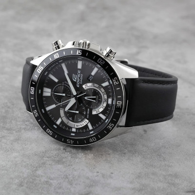 Предлагаем купить наручные часы Casio EFV-620L-1A в г. Москва. Это мужские часы из коллекции EDIFICE. Водозащита до 100 метров позволит плавать, нырять и заниматься другими водными видами спорта, не беспокоясь о сохранности механизма. Надежное минеральное стекло защищает часы от царапин и долго сохраняет первоначальный внешний вид. Минеральное стекло более устойчиво к появлению небольших царапин и потертостей, хорошо может выдержать небольшие удары и падения. Даже если поцарапаете стекло, его легко можно отполировать в часовой мастерской и вернуть им прежний вид. Корпус часов изготовлен из стали, механизм — кварц. Кварцевые часы всегда точнее механических. В среднем, погрешность хода составляет 20 секунд в месяц. Кварцевые часы не нужно заводить, только менять батарейку раз в несколько лет.