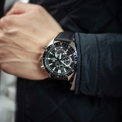 Предлагаем купить наручные часы Casio EFV-620L-1AVUEF в г. Москва. Это мужские часы из коллекции EDIFICE. Водозащита до 100 метров позволит плавать, нырять и заниматься другими водными видами спорта, не беспокоясь о сохранности механизма. Надежное минеральное стекло защищает часы от царапин и долго сохраняет первоначальный внешний вид. Минеральное стекло более устойчиво к появлению небольших царапин и потертостей, хорошо может выдержать небольшие удары и падения. Даже если поцарапаете стекло, его легко можно отполировать в часовой мастерской и вернуть им прежний вид. Корпус часов изготовлен из стали, механизм — кварц. Кварцевые часы всегда точнее механических. В среднем, погрешность хода составляет 20 секунд в месяц. Кварцевые часы не нужно заводить, только менять батарейку раз в несколько лет.