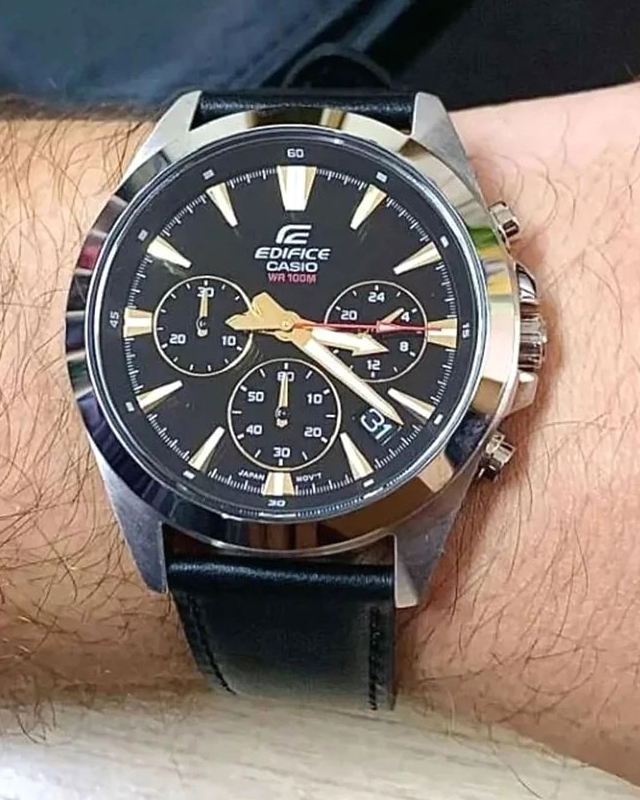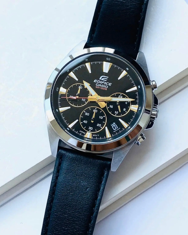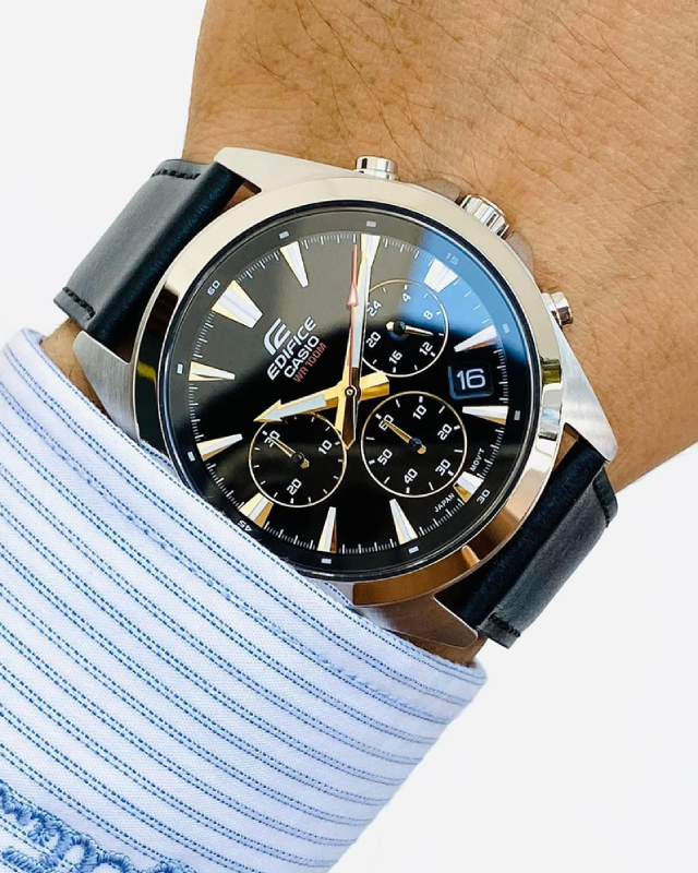 Предлагаем купить наручные часы Casio EFV-630L-1A в г. Москва. Это мужские часы из коллекции EDIFICE. Водозащита до 100 метров позволит плавать, нырять и заниматься другими водными видами спорта, не беспокоясь о сохранности механизма. Надежное минеральное стекло защищает часы от царапин и долго сохраняет первоначальный внешний вид. Минеральное стекло более устойчиво к появлению небольших царапин и потертостей, хорошо может выдержать небольшие удары и падения. Даже если поцарапаете стекло, его легко можно отполировать в часовой мастерской и вернуть им прежний вид. Корпус часов изготовлен из стали, механизм — кварц. Кварцевые часы всегда точнее механических. В среднем, погрешность хода составляет 20 секунд в месяц. Кварцевые часы не нужно заводить, только менять батарейку раз в несколько лет.