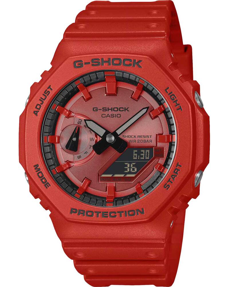 Предлагаем купить наручные часы Casio GA-2100RRB-4A в г. Москва. Это мужские часы из коллекции G-SHOCK Classic. Водозащита до 200 метров позволит плавать, нырять и погружаться под воду с аквалангом. Надежное минеральное стекло защищает часы от царапин и долго сохраняет первоначальный внешний вид. Минеральное стекло более устойчиво к появлению небольших царапин и потертостей, хорошо может выдержать небольшие удары и падения. Даже если поцарапаете стекло, его легко можно отполировать в часовой мастерской и вернуть им прежний вид. Корпус часов изготовлен из полимера, механизм — кварц. Кварцевые часы всегда точнее механических. В среднем, погрешность хода составляет 20 секунд в месяц. Кварцевые часы не нужно заводить, только менять батарейку раз в несколько лет.