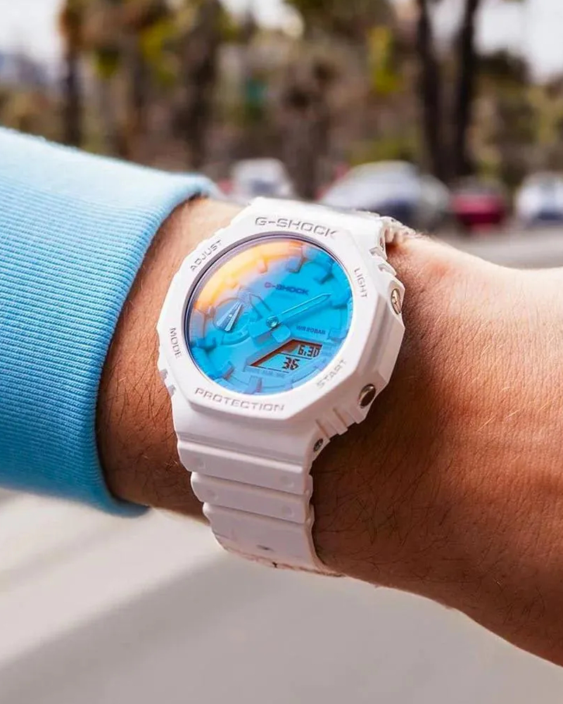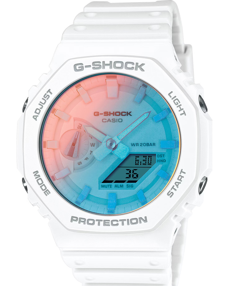Предлагаем купить наручные часы Casio GA-2100TL-7A в г. Москва. Это мужские часы из коллекции G-SHOCK Classic. Водозащита до 200 метров позволит плавать, нырять и погружаться под воду с аквалангом. Надежное минеральное стекло защищает часы от царапин и долго сохраняет первоначальный внешний вид. Минеральное стекло более устойчиво к появлению небольших царапин и потертостей, хорошо может выдержать небольшие удары и падения. Даже если поцарапаете стекло, его легко можно отполировать в часовой мастерской и вернуть им прежний вид. Корпус часов изготовлен из карбона, механизм — кварц. Кварцевые часы всегда точнее механических. В среднем, погрешность хода составляет 20 секунд в месяц. Кварцевые часы не нужно заводить, только менять батарейку раз в несколько лет.