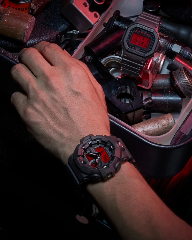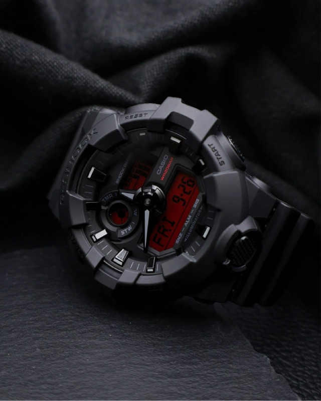 Предлагаем купить наручные часы Casio GA-700BBR-1A в г. Москва. Это мужские часы из коллекции G-SHOCK Classic. Водозащита до 200 метров позволит плавать, нырять и погружаться под воду с аквалангом. Надежное минеральное стекло защищает часы от царапин и долго сохраняет первоначальный внешний вид. Минеральное стекло более устойчиво к появлению небольших царапин и потертостей, хорошо может выдержать небольшие удары и падения. Даже если поцарапаете стекло, его легко можно отполировать в часовой мастерской и вернуть им прежний вид. Корпус часов изготовлен из полимера, механизм — кварц. Кварцевые часы всегда точнее механических. В среднем, погрешность хода составляет 20 секунд в месяц. Кварцевые часы не нужно заводить, только менять батарейку раз в несколько лет.