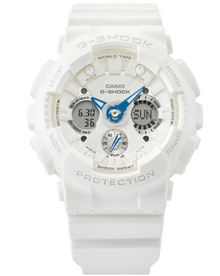 Предлагаем купить наручные часы Casio GMA-S120SA-7A2 в г. Москва. Это мужские часы из коллекции G-SHOCK Classic. Водозащита до 200 метров позволит плавать, нырять и погружаться под воду с аквалангом. Надежное минеральное стекло защищает часы от царапин и долго сохраняет первоначальный внешний вид. Минеральное стекло более устойчиво к появлению небольших царапин и потертостей, хорошо может выдержать небольшие удары и падения. Даже если поцарапаете стекло, его легко можно отполировать в часовой мастерской и вернуть им прежний вид. Корпус часов изготовлен из полимера, механизм — кварц. Кварцевые часы всегда точнее механических. В среднем, погрешность хода составляет 20 секунд в месяц. Кварцевые часы не нужно заводить, только менять батарейку раз в несколько лет.