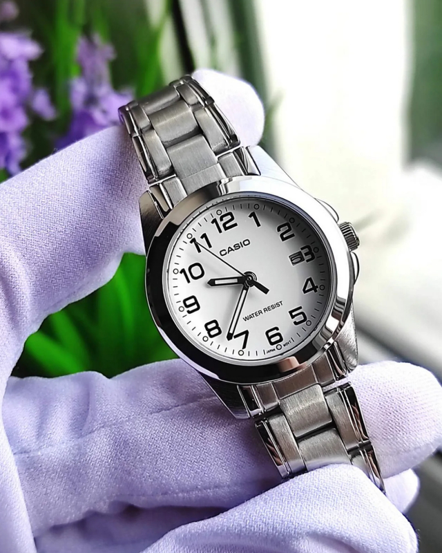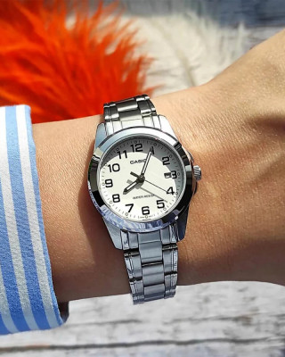 Предлагаем купить наручные часы Casio LTP-1215A-7B2 в г. Москва. Это классические женские часы из коллекции Collection Women. Водозащита до 30 метров позволит защитить корпус от случайных брызг или капель дождя. Надежное минеральное стекло защищает часы от царапин и долго сохраняет первоначальный внешний вид. Минеральное стекло более устойчиво к появлению небольших царапин и потертостей, хорошо может выдержать небольшие удары и падения. Даже если поцарапаете стекло, его легко можно отполировать в часовой мастерской и вернуть им прежний вид. Корпус часов изготовлен из стали, механизм — кварц. Кварцевые часы всегда точнее механических. В среднем, погрешность хода составляет 20 секунд в месяц. Кварцевые часы не нужно заводить, только менять батарейку раз в несколько лет.