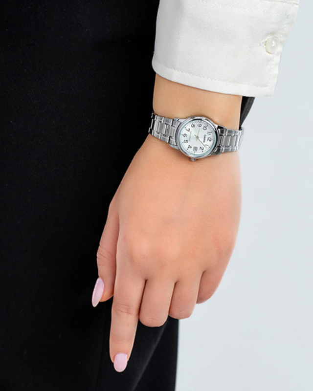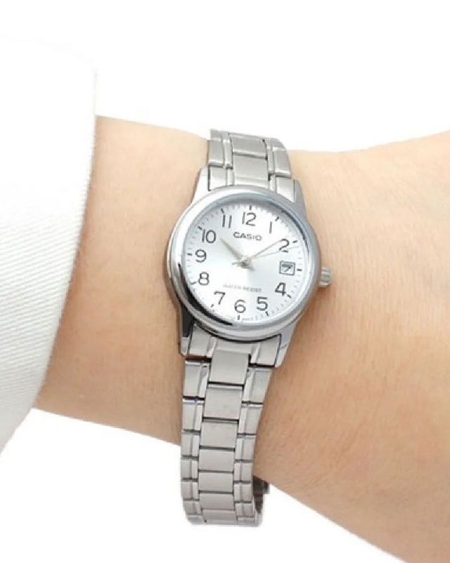 Предлагаем купить наручные часы Casio LTP-V002D-7B в г. Москва. Это классические женские часы из коллекции Collection Women. Водозащита до 30 метров позволит защитить корпус от случайных брызг или капель дождя. Надежное минеральное стекло защищает часы от царапин и долго сохраняет первоначальный внешний вид. Минеральное стекло более устойчиво к появлению небольших царапин и потертостей, хорошо может выдержать небольшие удары и падения. Даже если поцарапаете стекло, его легко можно отполировать в часовой мастерской и вернуть им прежний вид. Корпус часов изготовлен из стали, механизм — кварц. Кварцевые часы всегда точнее механических. В среднем, погрешность хода составляет 20 секунд в месяц. Кварцевые часы не нужно заводить, только менять батарейку раз в несколько лет.