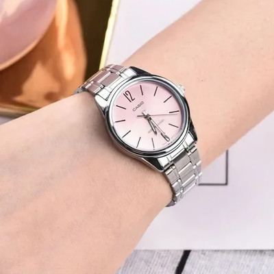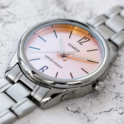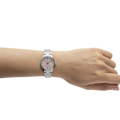 Предлагаем купить наручные часы Casio LTP-V005D-4B в г. Москва. Это классические женские часы из коллекции Collection Women. Водозащита до 30 метров позволит защитить корпус от случайных брызг или капель дождя. Надежное минеральное стекло защищает часы от царапин и долго сохраняет первоначальный внешний вид. Минеральное стекло более устойчиво к появлению небольших царапин и потертостей, хорошо может выдержать небольшие удары и падения. Даже если поцарапаете стекло, его легко можно отполировать в часовой мастерской и вернуть им прежний вид. Корпус часов изготовлен из стали, механизм — кварц. Кварцевые часы всегда точнее механических. В среднем, погрешность хода составляет 20 секунд в месяц. Кварцевые часы не нужно заводить, только менять батарейку раз в несколько лет.
