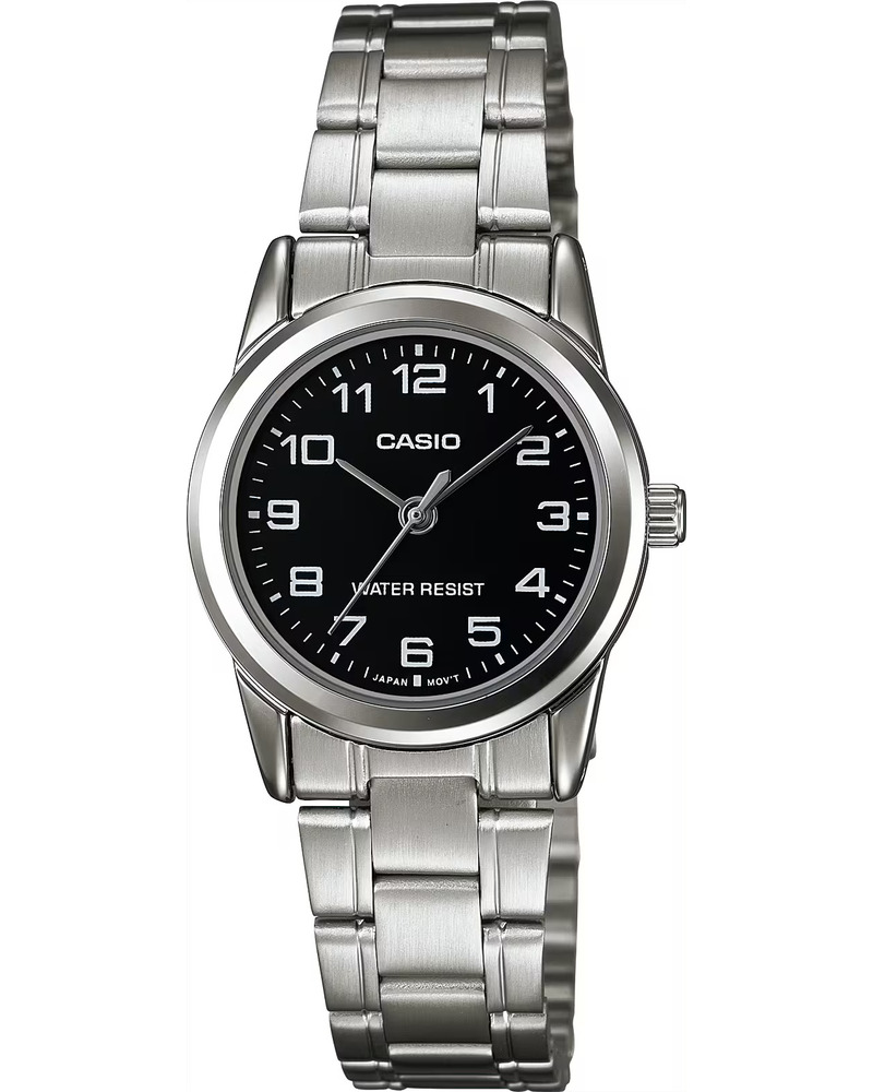 Предлагаем купить наручные часы Casio LTP-V005L-1B в г. Кемерово. Это классические женские часы из коллекции Collection Women. Водозащита до 30 метров позволит защитить корпус от случайных брызг или капель дождя. Надежное минеральное стекло защищает часы от царапин и долго сохраняет первоначальный внешний вид. Минеральное стекло более устойчиво к появлению небольших царапин и потертостей, хорошо может выдержать небольшие удары и падения. Даже если поцарапаете стекло, его легко можно отполировать в часовой мастерской и вернуть им прежний вид. Корпус часов изготовлен из стали, механизм — кварц. Кварцевые часы всегда точнее механических. В среднем, погрешность хода составляет 20 секунд в месяц. Кварцевые часы не нужно заводить, только менять батарейку раз в несколько лет.