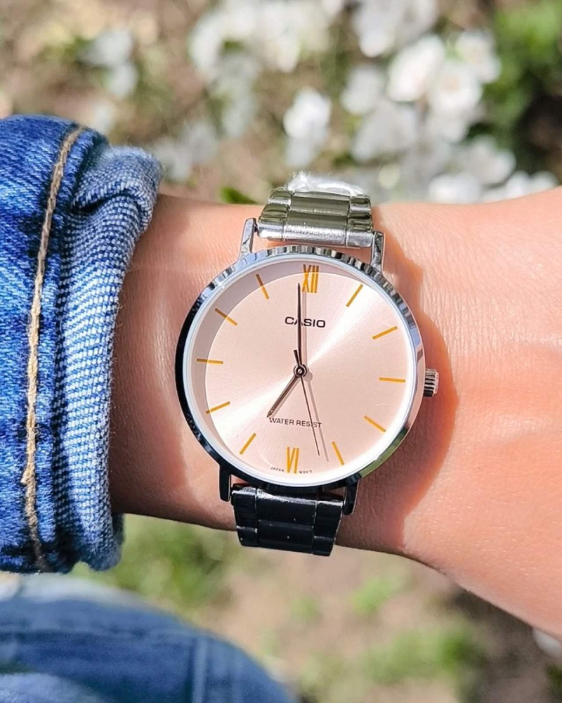 Предлагаем купить наручные часы Casio LTP-VT01D-4B в г. Москва. Это классические женские часы из коллекции Collection Women. Водозащита до 30 метров позволит защитить корпус от случайных брызг или капель дождя. Надежное минеральное стекло защищает часы от царапин и долго сохраняет первоначальный внешний вид. Минеральное стекло более устойчиво к появлению небольших царапин и потертостей, хорошо может выдержать небольшие удары и падения. Даже если поцарапаете стекло, его легко можно отполировать в часовой мастерской и вернуть им прежний вид. Корпус часов изготовлен из стали, механизм — кварц. Кварцевые часы всегда точнее механических. В среднем, погрешность хода составляет 20 секунд в месяц. Кварцевые часы не нужно заводить, только менять батарейку раз в несколько лет.