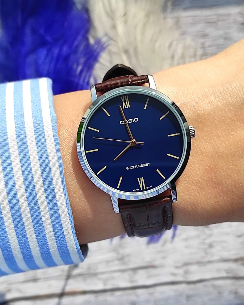 Предлагаем купить наручные часы Casio LTP-VT01L-2B в г. Москва. Это классические женские часы из коллекции Collection Women. Водозащита до 30 метров позволит защитить корпус от случайных брызг или капель дождя. Надежное минеральное стекло защищает часы от царапин и долго сохраняет первоначальный внешний вид. Минеральное стекло более устойчиво к появлению небольших царапин и потертостей, хорошо может выдержать небольшие удары и падения. Даже если поцарапаете стекло, его легко можно отполировать в часовой мастерской и вернуть им прежний вид. Корпус часов изготовлен из стали, механизм — кварц. Кварцевые часы всегда точнее механических. В среднем, погрешность хода составляет 20 секунд в месяц. Кварцевые часы не нужно заводить, только менять батарейку раз в несколько лет.