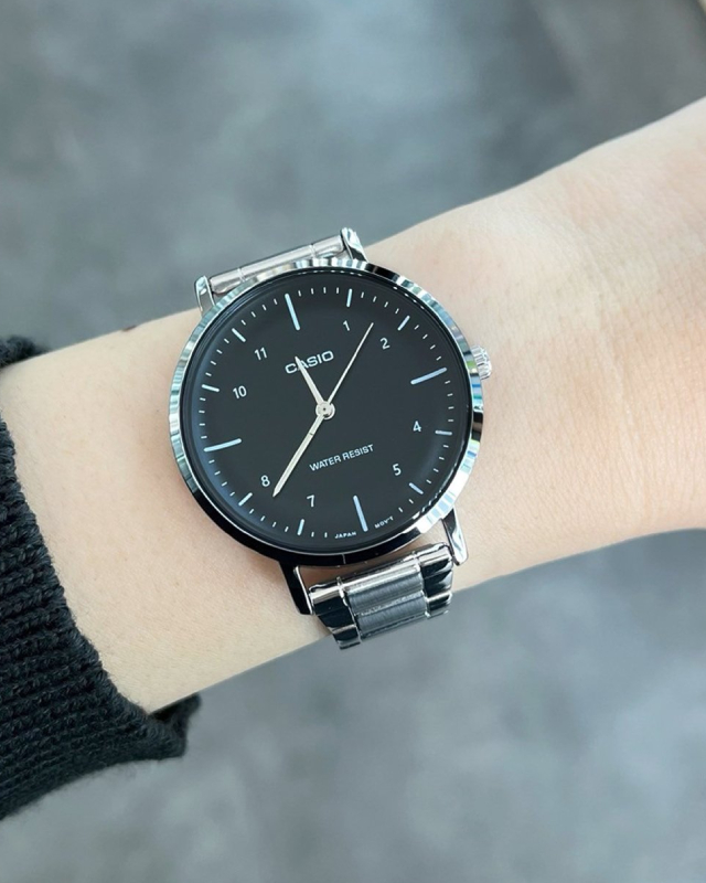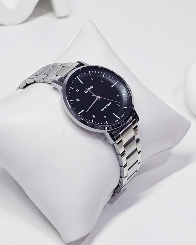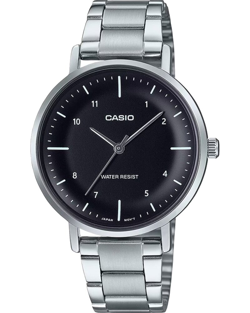 Предлагаем купить наручные часы Casio LTP-VT03D-1B в г. Москва. Это классические женские часы из коллекции Collection Women. Водозащита до 30 метров позволит защитить корпус от случайных брызг или капель дождя. Надежное минеральное стекло защищает часы от царапин и долго сохраняет первоначальный внешний вид. Минеральное стекло более устойчиво к появлению небольших царапин и потертостей, хорошо может выдержать небольшие удары и падения. Даже если поцарапаете стекло, его легко можно отполировать в часовой мастерской и вернуть им прежний вид. Корпус часов изготовлен из стали, механизм — кварц. Кварцевые часы всегда точнее механических. В среднем, погрешность хода составляет 20 секунд в месяц. Кварцевые часы не нужно заводить, только менять батарейку раз в несколько лет.