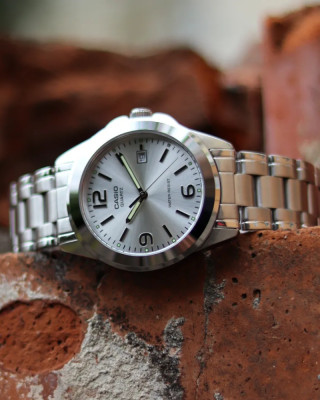 Предлагаем купить наручные часы Casio MTP-1215A-7A в г. Москва. Это классические мужские часы из коллекции Collection Men. Водозащита до 50 метров позволит принимать душ или умываться, не снимая часов. Надежное минеральное стекло защищает часы от царапин и долго сохраняет первоначальный внешний вид. Минеральное стекло более устойчиво к появлению небольших царапин и потертостей, хорошо может выдержать небольшие удары и падения. Даже если поцарапаете стекло, его легко можно отполировать в часовой мастерской и вернуть им прежний вид. Корпус часов изготовлен из стали, механизм — кварц. Кварцевые часы всегда точнее механических. В среднем, погрешность хода составляет 20 секунд в месяц. Кварцевые часы не нужно заводить, только менять батарейку раз в несколько лет.
