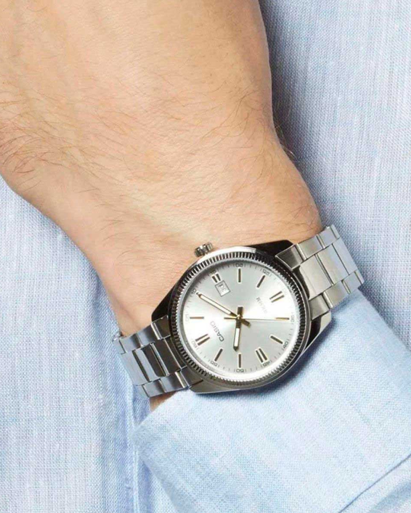 Предлагаем купить наручные часы Casio MTP-1302D-7A2 в г. Москва. Это классические мужские часы из коллекции Collection Men. Водозащита до 50 метров позволит принимать душ или умываться, не снимая часов. Надежное минеральное стекло защищает часы от царапин и долго сохраняет первоначальный внешний вид. Минеральное стекло более устойчиво к появлению небольших царапин и потертостей, хорошо может выдержать небольшие удары и падения. Даже если поцарапаете стекло, его легко можно отполировать в часовой мастерской и вернуть им прежний вид. Корпус часов изготовлен из стали, механизм — кварц. Кварцевые часы всегда точнее механических. В среднем, погрешность хода составляет 20 секунд в месяц. Кварцевые часы не нужно заводить, только менять батарейку раз в несколько лет.