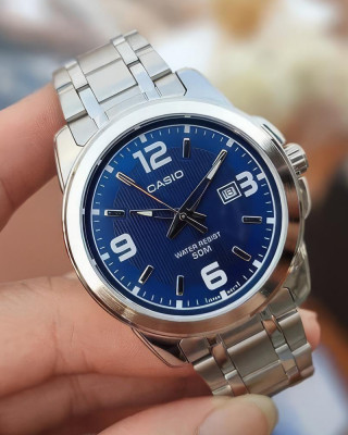 Предлагаем купить наручные часы Casio MTP-1314D-2A в г. Кемерово. Это мужские часы из коллекции Collection Men. Водозащита до 50 метров позволит принимать душ или умываться, не снимая часов. Надежное минеральное стекло защищает часы от царапин и долго сохраняет первоначальный внешний вид. Минеральное стекло более устойчиво к появлению небольших царапин и потертостей, хорошо может выдержать небольшие удары и падения. Даже если поцарапаете стекло, его легко можно отполировать в часовой мастерской и вернуть им прежний вид. Корпус часов изготовлен из стали, механизм — кварц. Кварцевые часы всегда точнее механических. В среднем, погрешность хода составляет 20 секунд в месяц. Кварцевые часы не нужно заводить, только менять батарейку раз в несколько лет.