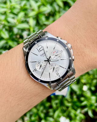 Предлагаем купить наручные часы Casio MTP-1374D-7A в г. Москва. Это классические мужские часы из коллекции Collection Men. Водозащита до 50 метров позволит принимать душ или умываться, не снимая часов. Надежное минеральное стекло защищает часы от царапин и долго сохраняет первоначальный внешний вид. Минеральное стекло более устойчиво к появлению небольших царапин и потертостей, хорошо может выдержать небольшие удары и падения. Даже если поцарапаете стекло, его легко можно отполировать в часовой мастерской и вернуть им прежний вид. Корпус часов изготовлен из латуни, механизм — кварц. Кварцевые часы всегда точнее механических. В среднем, погрешность хода составляет 20 секунд в месяц. Кварцевые часы не нужно заводить, только менять батарейку раз в несколько лет.