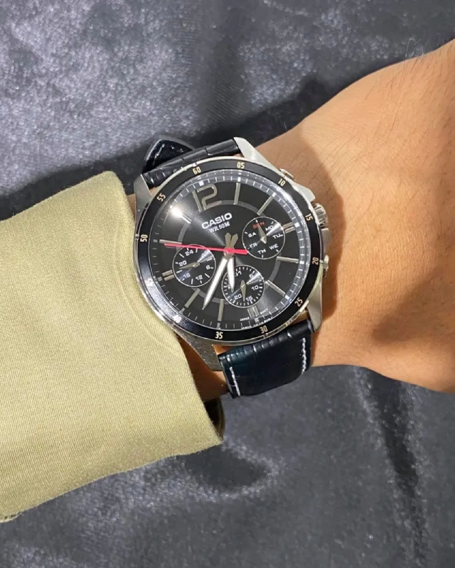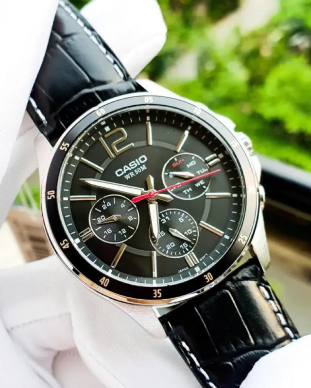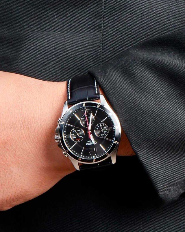 Предлагаем купить наручные часы Casio MTP-1374L-1A в г. Москва. Это классические мужские часы из коллекции Collection Men. Водозащита до 50 метров позволит принимать душ или умываться, не снимая часов. Надежное минеральное стекло защищает часы от царапин и долго сохраняет первоначальный внешний вид. Минеральное стекло более устойчиво к появлению небольших царапин и потертостей, хорошо может выдержать небольшие удары и падения. Даже если поцарапаете стекло, его легко можно отполировать в часовой мастерской и вернуть им прежний вид. Корпус часов изготовлен из стали, механизм — кварц. Кварцевые часы всегда точнее механических. В среднем, погрешность хода составляет 20 секунд в месяц. Кварцевые часы не нужно заводить, только менять батарейку раз в несколько лет.