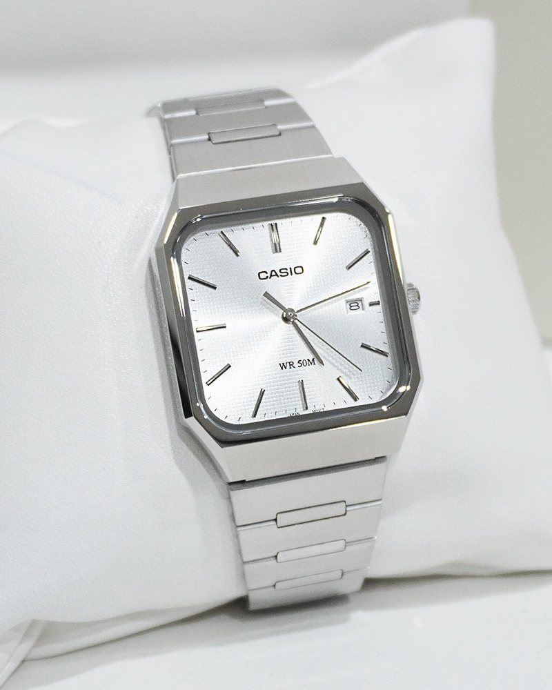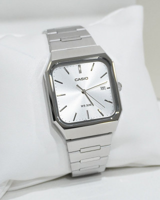 Предлагаем купить наручные часы Casio MTP-B185D-7A в г. Москва. Это мужские часы из коллекции Collection Men. Водозащита до 50 метров позволит принимать душ или умываться, не снимая часов. Надежное минеральное стекло защищает часы от царапин и долго сохраняет первоначальный внешний вид. Минеральное стекло более устойчиво к появлению небольших царапин и потертостей, хорошо может выдержать небольшие удары и падения. Даже если поцарапаете стекло, его легко можно отполировать в часовой мастерской и вернуть им прежний вид. Корпус часов изготовлен из стали, механизм — кварц. Кварцевые часы всегда точнее механических. В среднем, погрешность хода составляет 20 секунд в месяц. Кварцевые часы не нужно заводить, только менять батарейку раз в несколько лет.