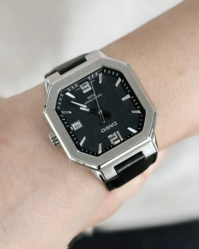 Предлагаем купить наручные часы Casio MTP-B195L-1A в г. Москва. Это мужские часы из коллекции Collection Men. Водозащита до 50 метров позволит принимать душ или умываться, не снимая часов. Надежное минеральное стекло защищает часы от царапин и долго сохраняет первоначальный внешний вид. Минеральное стекло более устойчиво к появлению небольших царапин и потертостей, хорошо может выдержать небольшие удары и падения. Даже если поцарапаете стекло, его легко можно отполировать в часовой мастерской и вернуть им прежний вид. Корпус часов изготовлен из стали, механизм — кварц. Кварцевые часы всегда точнее механических. В среднем, погрешность хода составляет 20 секунд в месяц. Кварцевые часы не нужно заводить, только менять батарейку раз в несколько лет.