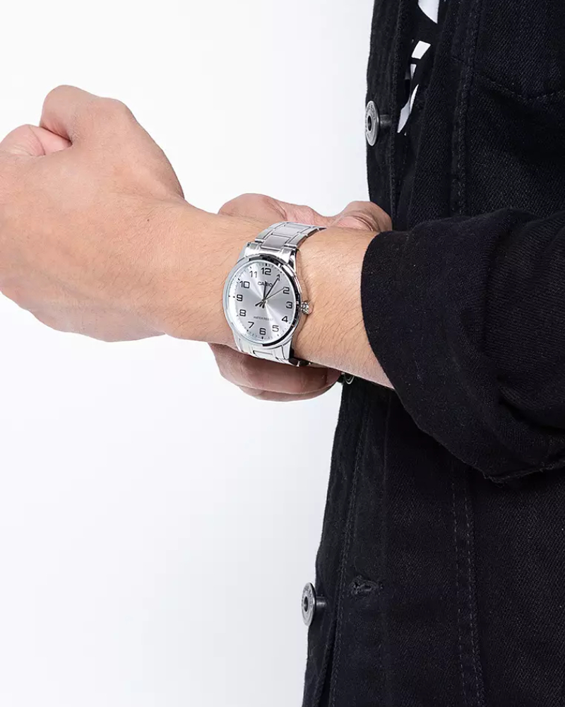 Предлагаем купить наручные часы Casio MTP-V001D-7B в г. Москва. Это мужские часы из коллекции Collection Men. Водозащита до 30 метров позволит защитить корпус от случайных брызг или капель дождя. Надежное минеральное стекло защищает часы от царапин и долго сохраняет первоначальный внешний вид. Минеральное стекло более устойчиво к появлению небольших царапин и потертостей, хорошо может выдержать небольшие удары и падения. Даже если поцарапаете стекло, его легко можно отполировать в часовой мастерской и вернуть им прежний вид. Корпус часов изготовлен из стали, механизм — кварц. Кварцевые часы всегда точнее механических. В среднем, погрешность хода составляет 20 секунд в месяц. Кварцевые часы не нужно заводить, только менять батарейку раз в несколько лет.