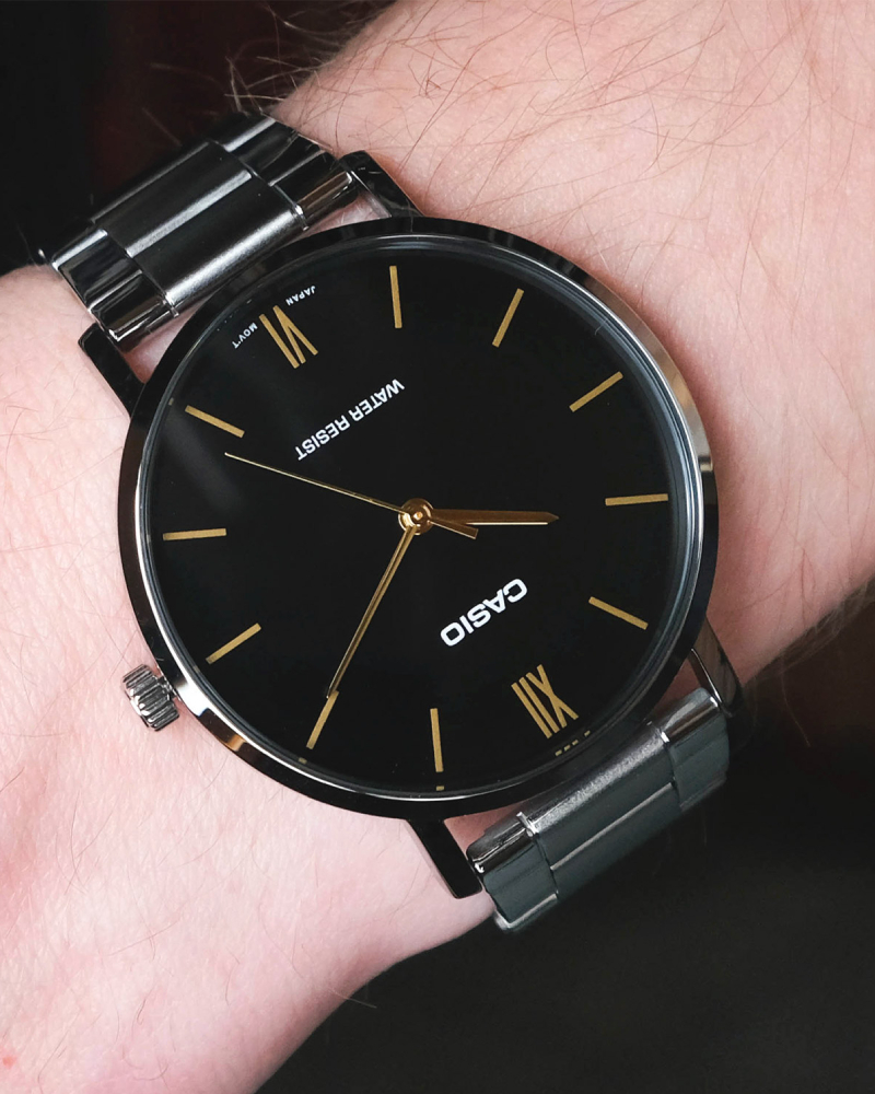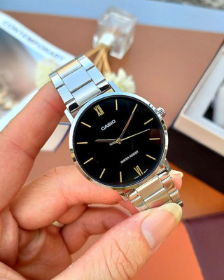 Предлагаем купить наручные часы Casio MTP-VT01D-1B в г. Москва. Это классические мужские часы из коллекции Collection Men. Водозащита до 30 метров позволит защитить корпус от случайных брызг или капель дождя. Надежное минеральное стекло защищает часы от царапин и долго сохраняет первоначальный внешний вид. Минеральное стекло более устойчиво к появлению небольших царапин и потертостей, хорошо может выдержать небольшие удары и падения. Даже если поцарапаете стекло, его легко можно отполировать в часовой мастерской и вернуть им прежний вид. Корпус часов изготовлен из стали, механизм — кварц. Кварцевые часы всегда точнее механических. В среднем, погрешность хода составляет 20 секунд в месяц. Кварцевые часы не нужно заводить, только менять батарейку раз в несколько лет.