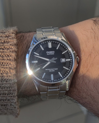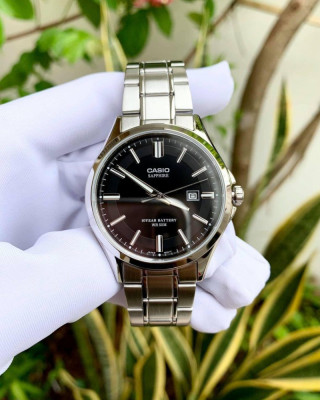 Предлагаем купить наручные часы Casio MTS-100D-1AVEF в г. Москва. Это классические мужские часы из коллекции Collection Men. Водозащита до 50 метров позволит принимать душ или умываться, не снимая часов. Надежное сапфировое стекло противостоит появлению царапин. Сапфировое стекло используется в дорогостоящих изделиях, это лучшее стекло для наручных часов, которое не царапается при механическом воздействии, его можно повредить только алмазом. Корпус часов изготовлен из стали, механизм — кварц. Кварцевые часы всегда точнее механических. В среднем, погрешность хода составляет 20 секунд в месяц. Кварцевые часы не нужно заводить, только менять батарейку раз в несколько лет.