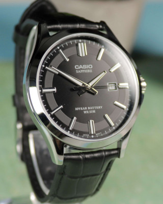 Предлагаем купить наручные часы Casio MTS-100L-1A в г. Москва. Это классические мужские часы из коллекции Collection Men. Водозащита до 50 метров позволит принимать душ или умываться, не снимая часов. Надежное сапфировое стекло противостоит появлению царапин. Сапфировое стекло используется в дорогостоящих изделиях, это лучшее стекло для наручных часов, которое не царапается при механическом воздействии, его можно повредить только алмазом. Корпус часов изготовлен из стали, механизм — кварц. Кварцевые часы всегда точнее механических. В среднем, погрешность хода составляет 20 секунд в месяц. Кварцевые часы не нужно заводить, только менять батарейку раз в несколько лет.