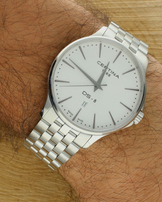 Предлагаем купить наручные часы Certina C045.410.11.011.00 в г. Москва. Это классические мужские часы из коллекции DS 8. Водозащита до 100 метров позволит плавать, нырять и заниматься другими водными видами спорта, не беспокоясь о сохранности механизма. Надежное сапфировое стекло противостоит появлению царапин. Сапфировое стекло используется в дорогостоящих изделиях, это лучшее стекло для наручных часов, которое не царапается при механическом воздействии, его можно повредить только алмазом. Корпус часов изготовлен из стали, механизм — кварц. Кварцевые часы всегда точнее механических. В среднем, погрешность хода составляет 20 секунд в месяц. Кварцевые часы не нужно заводить, только менять батарейку раз в несколько лет.