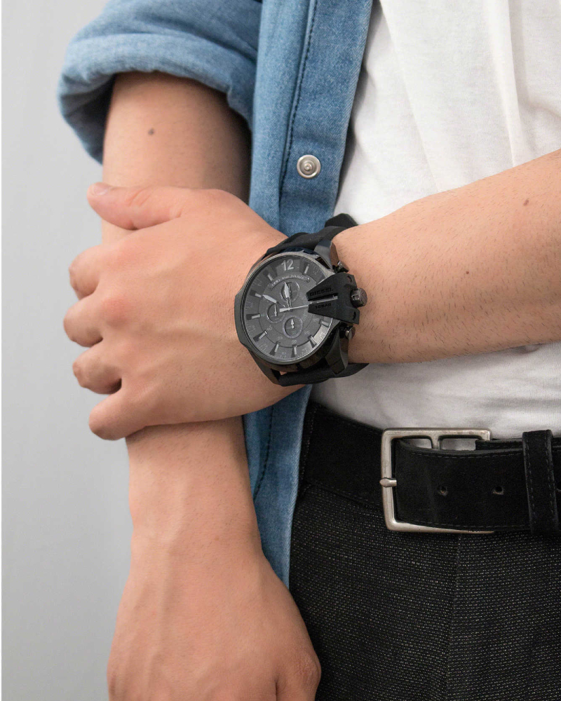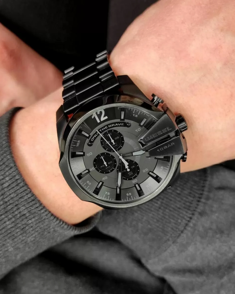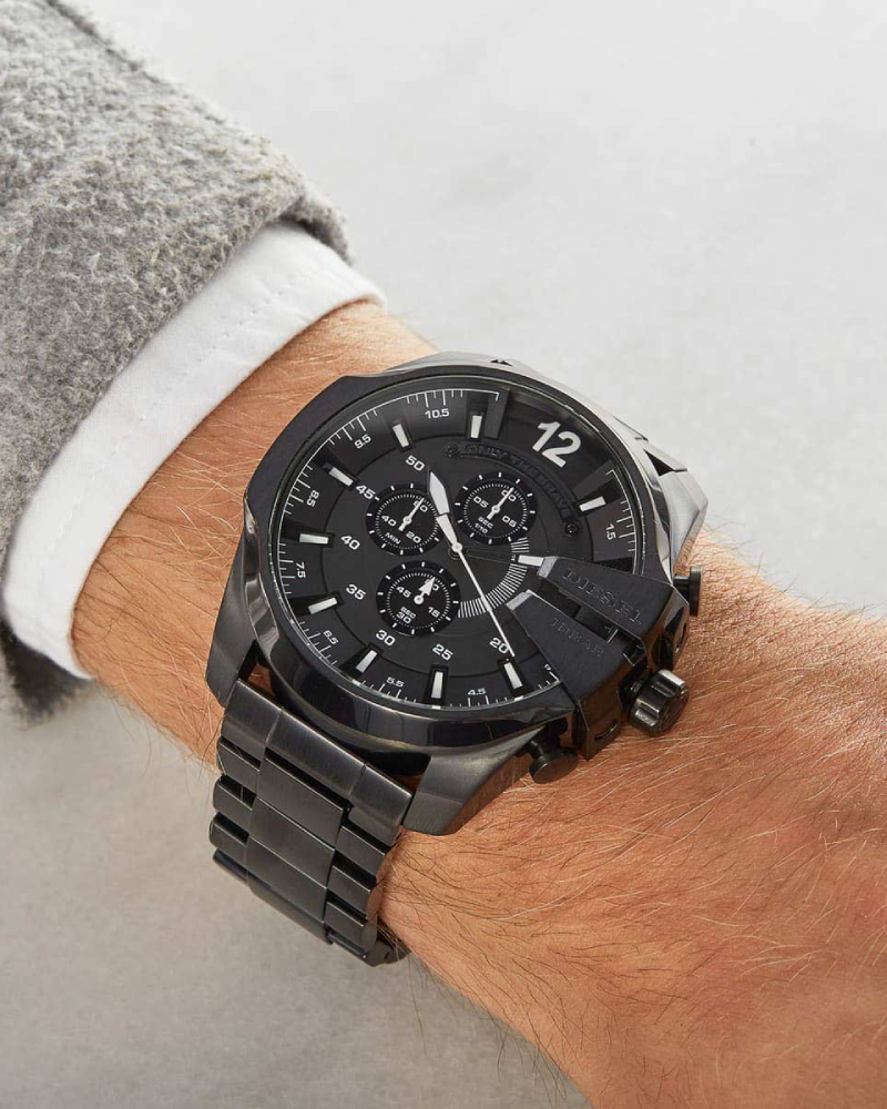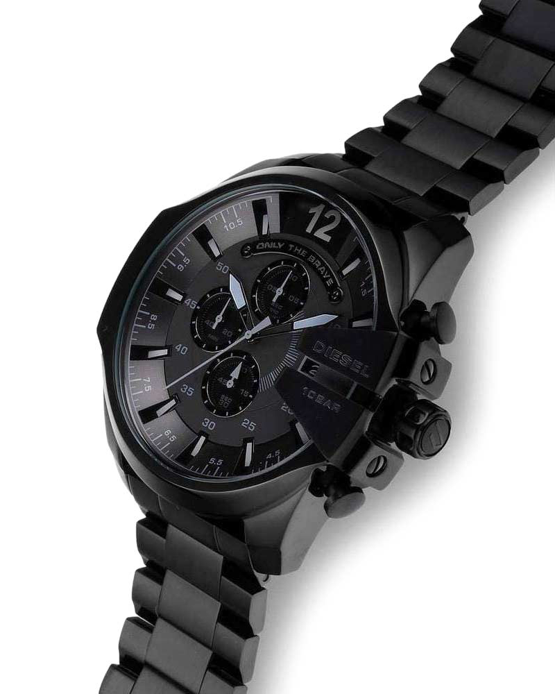 Предлагаем купить наручные часы Diesel DZ4355 в г. Москва. Это мужские часы из коллекции Mega Chief. Водозащита до 100 метров позволит плавать, нырять и заниматься другими водными видами спорта, не беспокоясь о сохранности механизма. Надежное минеральное стекло защищает часы от царапин и долго сохраняет первоначальный внешний вид. Минеральное стекло более устойчиво к появлению небольших царапин и потертостей, хорошо может выдержать небольшие удары и падения. Даже если поцарапаете стекло, его легко можно отполировать в часовой мастерской и вернуть им прежний вид. Корпус часов изготовлен из стали, механизм — кварц. Кварцевые часы всегда точнее механических. В среднем, погрешность хода составляет 20 секунд в месяц. Кварцевые часы не нужно заводить, только менять батарейку раз в несколько лет.