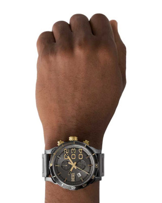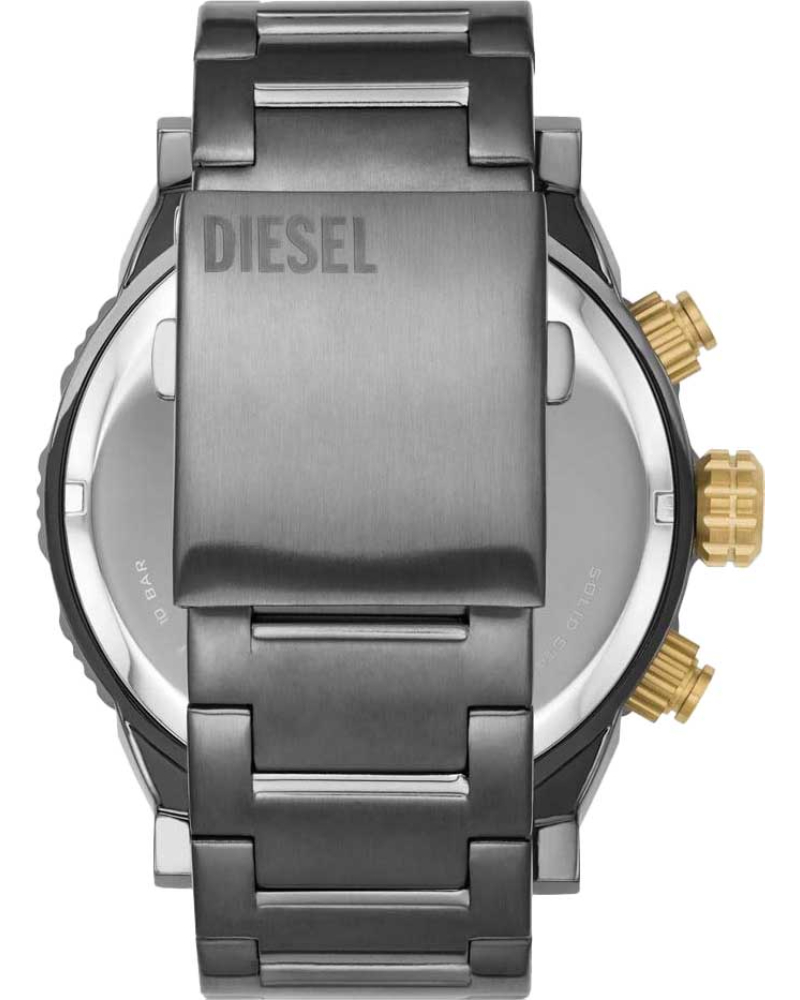 Предлагаем купить наручные часы Diesel DZ4614 в г. Москва. Это мужские часы из коллекции Double Down 2.0. Водозащита до 100 метров позволит плавать, нырять и заниматься другими водными видами спорта, не беспокоясь о сохранности механизма. Надежное минеральное стекло защищает часы от царапин и долго сохраняет первоначальный внешний вид. Минеральное стекло более устойчиво к появлению небольших царапин и потертостей, хорошо может выдержать небольшие удары и падения. Даже если поцарапаете стекло, его легко можно отполировать в часовой мастерской и вернуть им прежний вид. Корпус часов изготовлен из стали, механизм — кварц. Кварцевые часы всегда точнее механических. В среднем, погрешность хода составляет 20 секунд в месяц. Кварцевые часы не нужно заводить, только менять батарейку раз в несколько лет.