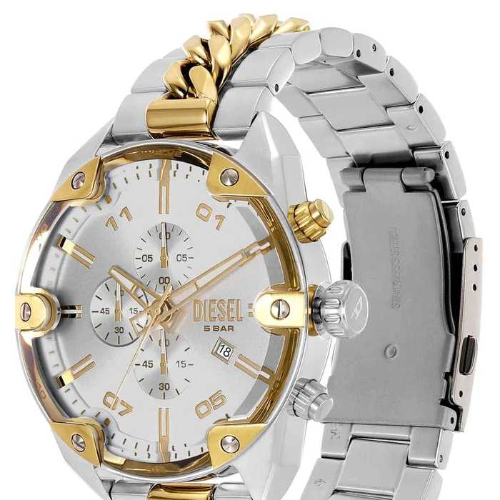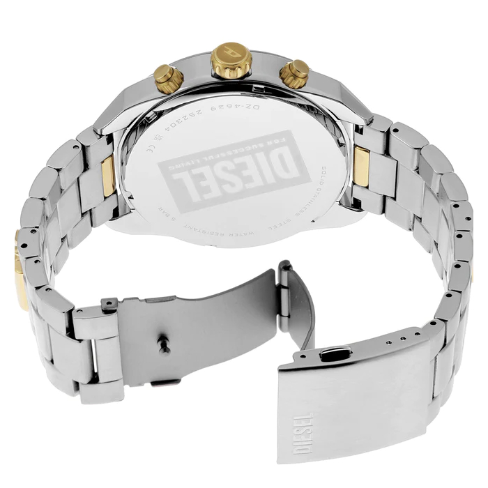 Предлагаем купить наручные часы Diesel DZ4629 в г. Москва. Это мужские часы из коллекции Spiked. Водозащита до 50 метров позволит принимать душ или умываться, не снимая часов. Надежное минеральное стекло защищает часы от царапин и долго сохраняет первоначальный внешний вид. Минеральное стекло более устойчиво к появлению небольших царапин и потертостей, хорошо может выдержать небольшие удары и падения. Даже если поцарапаете стекло, его легко можно отполировать в часовой мастерской и вернуть им прежний вид. Корпус часов изготовлен из стали, механизм — кварц. Кварцевые часы всегда точнее механических. В среднем, погрешность хода составляет 20 секунд в месяц. Кварцевые часы не нужно заводить, только менять батарейку раз в несколько лет.