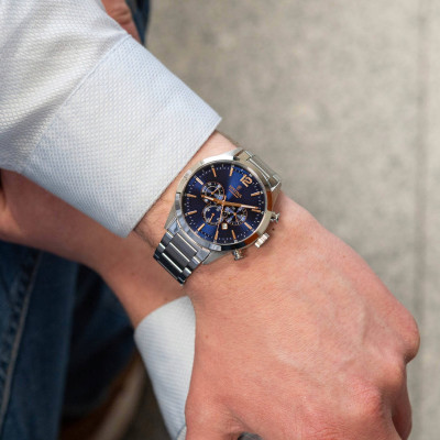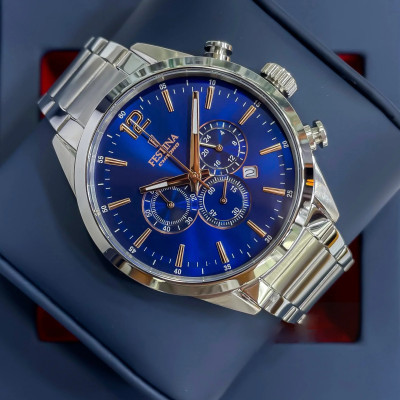 Предлагаем купить наручные часы Festina F20343/9 в г. Москва. Это мужские часы из коллекции Timeless Chronograph. Водозащита до 50 метров позволит принимать душ или умываться, не снимая часов. Надежное минеральное стекло защищает часы от царапин и долго сохраняет первоначальный внешний вид. Минеральное стекло более устойчиво к появлению небольших царапин и потертостей, хорошо может выдержать небольшие удары и падения. Даже если поцарапаете стекло, его легко можно отполировать в часовой мастерской и вернуть им прежний вид. Корпус часов изготовлен из стали, механизм — кварц. Кварцевые часы всегда точнее механических. В среднем, погрешность хода составляет 20 секунд в месяц. Кварцевые часы не нужно заводить, только менять батарейку раз в несколько лет.