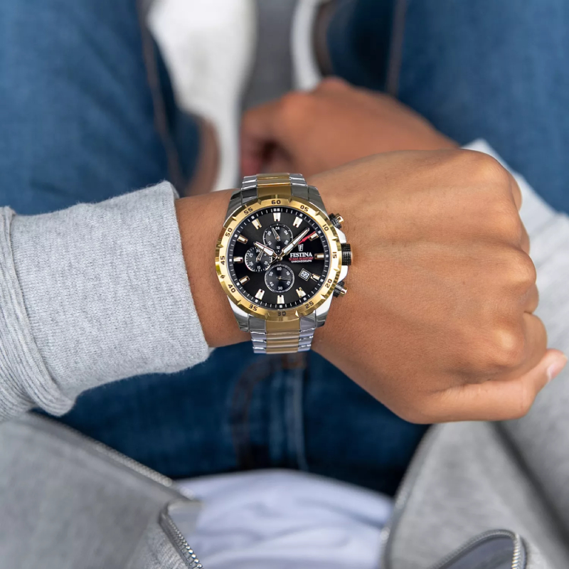 Предлагаем купить наручные часы Festina F20562/4 в г. Москва. Это мужские часы из коллекции Chrono Sport. Водозащита до 100 метров позволит плавать, нырять и заниматься другими водными видами спорта, не беспокоясь о сохранности механизма. Надежное минеральное стекло защищает часы от царапин и долго сохраняет первоначальный внешний вид. Минеральное стекло более устойчиво к появлению небольших царапин и потертостей, хорошо может выдержать небольшие удары и падения. Даже если поцарапаете стекло, его легко можно отполировать в часовой мастерской и вернуть им прежний вид. Корпус часов изготовлен из стали, механизм — кварц. Кварцевые часы всегда точнее механических. В среднем, погрешность хода составляет 20 секунд в месяц. Кварцевые часы не нужно заводить, только менять батарейку раз в несколько лет.
